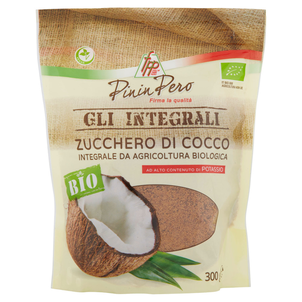 Bio-Kokosnuss-Vollzucker, Pinin Pero, 300g. Wird aus dem Nektar der Blüten von Kokospalmen gewonnen. Vegan – Während des gesamten Produktionszyklus werden keine Produkte, Verarbeitungshilfen oder Geräte tierischen Ursprungs verwendet. Kühl und trocken lagern . Organisch.Geeignet für Veganer.