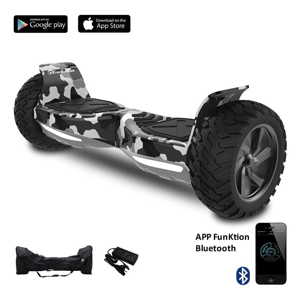 Evercross 8,5 Zoll, Bluetooth App Geländewagen Elektroroller Roller Smart Balance Allroad Skateboard Army Green. Die selbstausgleichende elektrische Plattform passt sich mithilfe eines internen Gyroskops und eines Beschleunigungssensors dynamisch an Ihre Waage an. Die Bewegung der Plattform wird durch Ihren Schwerpunkt gesteuert. Mit dem neuen Smart Balance Wheel können Sie sich mit der alleinigen Bewegung Ihres Körpers bequem in der Stadt bewegen. Unisex, geeignet für Erwachsene und Kinder. Der Elektroroller ist ein echtes Transportmittel, da sich das Fahrrad in den Metropolen ausbreitet, da es ökologisch ist und als Freizeitbeschäftigung oder zum komfortablen Reisen über weite Strecken genutzt werden kann. Auch als elektrische Skateboards oder Hoverboards bekannt, sind sie definitiv die Neuheit des Augenblicks und eine gültige Idee für ein neues und erfolgreiches Geschenk. Es handelt sich um ein elektrisches Skateboard oder ein technologisches Gerät, das sich mit der Verlagerung der Körpermitte und dem Druck der Füße bewegen kann. Version für Erwachsene. Es geht einfach weiter, indem Sie die Finger ein wenig nach vorne drücken. Die ersten Male werden nicht einfach sein, aber sobald Sie das Gleichgewicht und den richtigen Druck zum Schieben oder Drehen gefunden haben, werden Sie in kurzer Zeit und mit viel Spaß durch die Stadt fliegen. Wir empfehlen die Verwendung eines Schutzhelms bei Stürzen. Technische Eigenschaften: Verpackungsmaße (cm) – 22 26 72 cm Nettogewicht: 14 kg. Maximale Belastung – 150 kg. Reifengröße: 8,5 “” Autonomie: 15-20 km Höchstgeschwindigkeit: 15 km / h Batteriekapazität: 36 V 4.4a Batterieanzeige Ladezeit: 2-3 h Motorleistung: 700 W (2×350 W) Das Paket enthält: 1 Streetboard 8,5 zoll 1 brosa 1 ladegerät 1 handbuch zertifikate: ce – produkt entspricht den sicherheitsanforderungen, die in den geltenden gemeinschaftsrichtlinien oder vorschriften vorgesehen sind