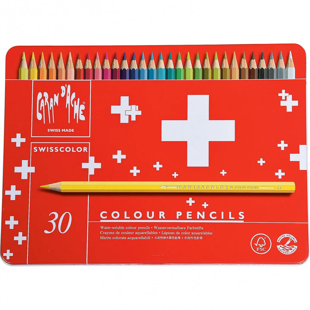 Farbige Bleistifte Swisscolor 30 Stück. Bleistifte farbige Bleistifte, harmonisch in einem Metallgehäuse mit Schweizer Kreuz Motiven sortiert.Material: FSC-zertifiziertes Holz aus verantwortungsvollen EinkaufsquellenGarantie: 2 JahreEine Reihe von hochwertigen wasserlöslichen Farbstiften. Die hervorragende Auswahl an Farben sind ideal für Design. Wasser kann zu diesen Bleistiften hinzugefügt werden, um einen Aquarelleffekt auf Ihre Entwürfe zu erhalten. In Schutzhülle verpackt. Enthält 30 hervorragende Qualität FarbstifteIn der Schweiz entwickelt und hergestellt.