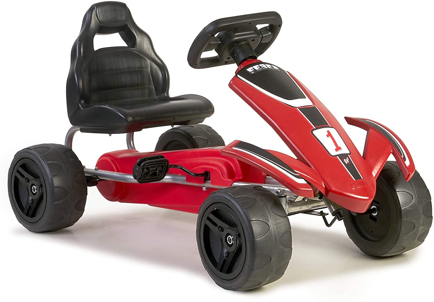 Go-Kart mit Pedalen, für Kinder, Feber, rot und schwarz. Mit dem Feber Pedalkart ist der Spaß garantiert. Die Pedale ermöglichen es Ihnen, mit Leichtigkeit zu beschleunigen und richtig zu manövrieren. Ausgestattet mit einem Lenkrad zum Vorwärts- und Rückwärtsfahren sowie zum Drehen nach links und rechts. Verstellbarer Sitz in 2 Positionen.Feber Pedalkart ab 3 Jahren; empfohlenes Höchstgewicht 30 kg Lenkrad zum Vorwärts-/Rückwärtsfahren/Rechtsabbiegen/Linksabbiegen Verstellbarer Sitz für mehr Komfort (2 Positionen) Hilft bei der Entwicklung kognitiver und motorischer Fähigkeiten Größe des montierten Produkts: 89 cm (L) x 52 cm (B) x 50 cm (H)Merkmale: Batteriebetrieben: Nein Empfohlene Verwendung: Pedale Farbe: Rot/Schwarz Eigenschaften: Verstellbarer Sitz Ungefähre Maße: 49 x 51 x 82 cm Empfohlenes Alter: +3 Jahre