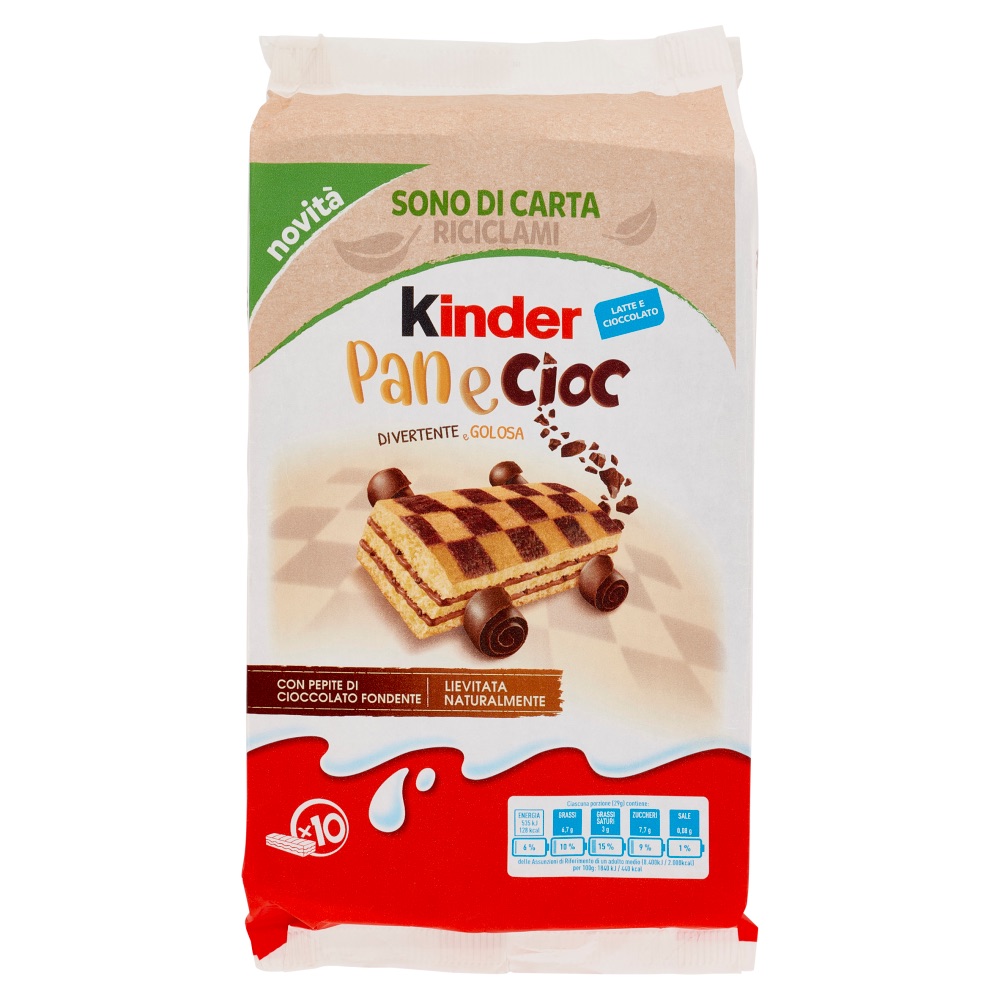 Kinder Ferrero Pan e Cioc – Packung mit 10 Snacks, 290 gr. Es ist ein Snack mit natürlich gesäuerten Semmelbrösel und einer doppelten Füllung mit Kakao und extra Schokoladenflocken. Ein lustiger und leckerer Snack, der die ganze Familie zum Frühstück lockt. Praktisches Format von 10 Snacks einzeln verpackt. Wir machen unsere Snacks garantiert eine Erhöhung von 5 Stunden. INGREDIENTS – WHEAT Mehl (23,5%), extra Schokolade 15,5% (Zucker, Kakaopaste, Kakaobutter, Emulgatoren: Lecithine (Soja); Aromen), Zucker, nicht hydrierte pflanzliche Fette (Palme, Palmisto), rehydriertes Milchpulver (6,5%), Eigelb (6%), nicht-hydriertes Sonnenblumenöl, Wasser, Magermilchpulver (3%), WHEAT Gluten, Reismehl, Bierhefe, Milchproteine, , LACTOSE, Emulgatoren: Mono- und Diglyceride von Fettsäuren, Lecithinen (SOYA); Salz. Mit Schokolade nur reiner Kakao. Kann NUTS enthalten.