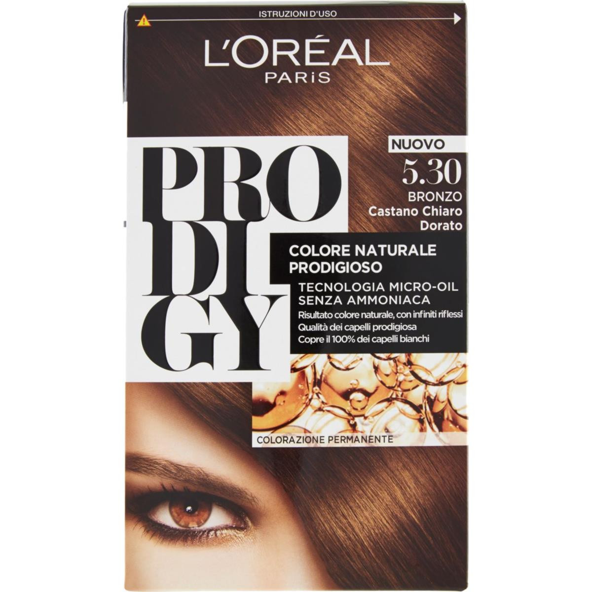 Prodigy ist eine neue Generation Farbe, mit Micro-Oil-Technologie, ohne Ammoniak. Es verleiht dem Herzen der Haarfaser Farbe und erzeugt die subtilsten Nuancen einer natürlichen Farbe. Die färbende Creme, ohne Ammoniak, duftet und lässt das Haar weich und seidig anfühlen. Eine mit Öl angereicherte Textur, die Strähne für Strähne durchdringt, um weiße Haare ohne Helmeffekt perfekt zu bedecken. FARBE 5.30 Bronze PRODUKTINFO:1 Packungsinhalt 1. Tube Prodigy-Färbecreme 2. Prodigy-Creme-Detektor 3. Sublimationsbehandlung von Farbe, Seideneffekt A (a). Prodigy Soft-Touch-Ampulle A (b). Mundstückapplikator Flasche B. Patel Emulgator C. * Qualität * Die Handschuhe Spatels Emulgator ist im Inneren des Handschuhbeutel 2 Gebrauchsanweisung Gebrauchsanweisung: Lesen vor der Verwendung dieses Produkts ist nicht beabsichtigt zu sein, verwendet für Personen unter 16 Jahren. Führen Sie in jedem Fall 48 Stunden vor jeder Anwendung dieses Produkts einen Allergiewarnungstest durch; Allergien können sich plötzlich äußern, auch wenn Sie zuvor ein Farbprodukt dieser oder einer anderen Marke verwendet haben. Wichtig: Haarfärbemittel können schwere allergische Reaktionen hervorrufen. Um dem Risiko einer allergischen Reaktion vorzubeugen, müssen folgende Hinweise beachtet werden: – Temporäre schwarze Henna-Tattoos können das Allergierisiko erhöhen. – Färben Sie Ihre Haare nicht: – wenn Sie einen Hautausschlag haben oder Ihre Kopfhaut empfindlich, gereizt oder geschädigt ist; – wenn Sie nach dem Absetzen der Haare Reaktionen hatten; – wenn in der Vergangenheit Reaktionen nach einer Tätowierung mit schwarzem Henna aufgetreten sind. Durchführung des Allergiewarnungstest: – Entfernen Sie die Ohrringe. Mit einem Wattestäbchen hinter dem Ohr eine Menge unvermischter Färbecreme (Tube 1) auftragen, die ausreicht, um eine Fläche von einem Hundertstel eines Euro (von 1 bis 2 cm²) zu bedecken. In der Zwischenzeit erneut auftragen und trocknen lassen. Schließen Sie das Färbeprodukt vorsichtig und lagern Sie es 48 Stunden später für den Gebrauch. – Warten Sie 48 Stunden, ohne sich zu waschen, abzudecken oder zu berühren. Wenn Sie in diesem Zeitraum anomale Reaktionen wie Juckreiz, Rötung oder Schwellung bemerken, sollten Sie im Testbereich oder in diesem Bereich keine Flecken hinterlassen. Besondere Vorsichtsmaßnahmen – Im Falle einer Reaktion während der Anwendung, wie z. B. intensives Kribbeln, Reizung, Pusteln oder Brennen der Kopfhaut, spülen Sie sofort und beenden Sie die Anwendung. Bei Atembeschwerden sofort medizinische Hilfe in Anspruch nehmen. Bevor Sie ein färbendes Produkt auftragen, konsultieren Sie einen Arzt. – Wenn während der Tage der Anwendung folgenden erscheinen Juckreiz, Rötungen, Pusteln der Kopfhaut und / oder der Haut, der Augen Schwellungen und / oder Gesicht, mit Blasen bedeckt oder Ausscheidungen der Kopfhaut und / oder der Haut, ist es empfehlenswert, einen Arzt aufsuchen. – Darf nicht in die Hände von Kindern gelangen. – Kontakt mit Haut und Augen vermeiden. Verwenden Sie nicht zum Färben Wimpern und Augenbrauen. – Bei Kontakt mit dem Produkt sofort und gründlich die Augen spülen. Wenn Sie Kontaktlinsen tragen, entfernen Sie diese, bevor Sie die Augen gründlich mit Wasser spülen. – Tragen Sie die entsprechenden Handschuhe im Koffer. – Spülen Sie die Haare nach der Anwendung gut aus. – Bereiten Sie vor und wenden Sie die Mischung vorzugsweise in einem gut belüfteten Raum an. – Nicht einatmen oder schlucken. – Wenden Sie sich bei allen Fragen zu Ihrer persönlichen Empfindlichkeit an Ihren Arzt. – Verwenden Sie nicht, um Bart und Schnurrbart oder für eine andere Verwendung als Haarfärbung zu färben. Vermeiden Sie unnötigen Kontakt mit der Haut. – Nicht auf gebügeltem Haar anwenden. Warten Sie 15 Tage nach einer Verfärbung, einer dauerhaften oder dauerhaften Glättung, bevor Sie das Produkt auftragen. – Nicht verwenden, wenn Ihr Haar mit Henna oder einem progressiven Färbeprodukt gefärbt wurde. Folgen Sie den Gebrauchsanweisungen. 3 Vorbereitung ” Praxis ” 1 Tragen Sie Handschuhe und bedecken Sie die Schultern mit einem Handtuch, um Sie vor Spritzern zu schützen. 2 Gießen Sie den gesamten Inhalt des cremefarbenen Prodigy-Röhrchens in die Prodigy Soft-Touch-Ampulle. Diese Röhre wurde zuvor gebohrt, um den Allergiewarnungstest durchzuführen. Dann gießen Sie den gesamten Inhalt des Prodigy Cream Detector. 3 Mischen Sie den Inhalt mit dem Emulgierspatel, bis eine völlig gleichmäßige Mischung erreicht ist. 4 Vissez l’applicateur supérieur (Ab) sur le bol Soft-touch et fermez-le bien. Bien agiter le flacon pour obtenir un mélange parfaitement homogène. Dévissez ensuite la buse au bout de l’applicateur (Ab) pour commencer l’application. Dévisser l’embout situé au bout de l’applicateur immédiatement après la préparation du mélange, afin d’éviter que le flacon éclate et ne provoque des fuites de produit. 4 Application ” Professional ” 1? Application (sur cheveux secs et non lavés) Si vous colorez vos cheveux pour la première fois, ou si vos cheveux n’ont pas été colorés au cours des 3 derniers mois, ou si vous changez radicalement de couleur de cheveux 1 Continuer à porter des gants, appliqué le produit des racines, séparant les cheveux en sections, ajustant la pression de la partie molle du flacon applicateur…