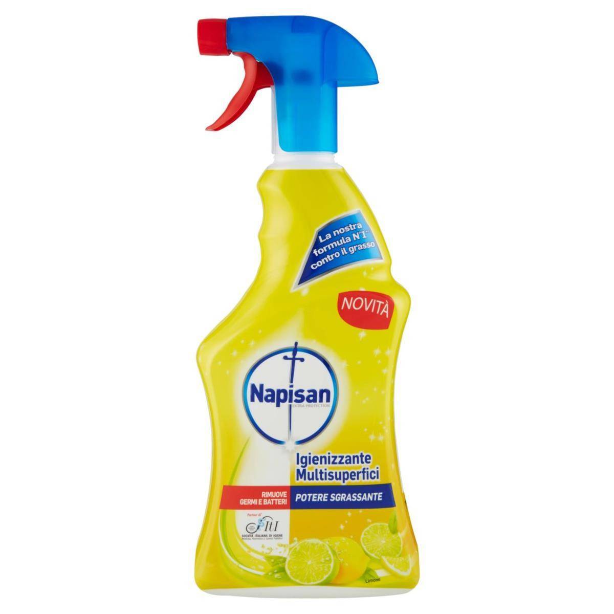 Napisan Spray Sanitizing Multisurfaces Entfettungsleistung. Desinfektionsspray mit entfettender Wirkung: Ideal zur Reinigung und Desinfektion aller Oberflächen Ihres Hauses. Die neue Formel garantiert tiefe Hygiene durch die Entfernung von Keimen und Bakterien und ermöglicht die einfache Entfernung von Fett, verbrannten Speiseresten und Seife. PRODUKTINFO: Geeignet für die Hygiene von: Küchenflächen, Herd, Abtropffläche und Spüle Badezimmerflächen, Duschabtrennungen, Armaturen und Fußböden AUFBAU: <5% nichtionische Tenside, kationische Tenside, Parfüm. Contone Limonen.