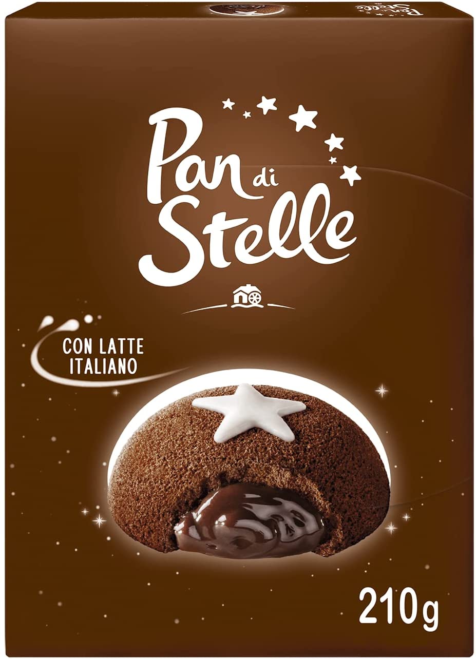 Pan di Stelle Mondkuchen, Süßer Snack zum Naschen, 6 Snacks. Ein Freigeist, wenn er Lust hat, wird er zum Snack, zur Zwischenmahlzeit, zur Süßspeise, zum Dessert und vielem mehr. Es ist instinktiv: zwischen dem Verstand und dem Herzen, es folgt immer dem Herzen. Cremig, Schokolade. Entdecken Sie die gesamte Produktpalette von Pan di Stelle: Kekse, Süßigkeiten, Snacks und Brotaufstriche, die Sie zu jeder Tageszeit begleiten. Zutaten Zucker, Glukosesirup, Wasser, Schokolade 9% (Kakaomasse, Zucker, Emulgator: Sojalecithin), Weizenstärke, frische Eier, Magermilchpulver 6%, Kakao 5,4%, Dextrose, Weizenmehl, Eigelb, modifizierte Stärke, Sonnenblumenöl, Butter, Aromen (Milch), Milcheiweiß, Emulgatoren (Mono- und Diglyceride von Speisefettsäuren, Sojalecithin), pflanzliches Fett (Kokosnuss, Kakaobutter), Eiweißpulver, Backtriebmittel (Dinatriumdiphosphat, Natriumhydrogencarbonat, Ammoniumcarbonat), Salz. Kann Spuren von Nüssen und Sesam enthalten. Die hervorgehobenen Inhaltsstoffe können bei Allergikern oder Unverträglichen Reaktionen hervorrufen.