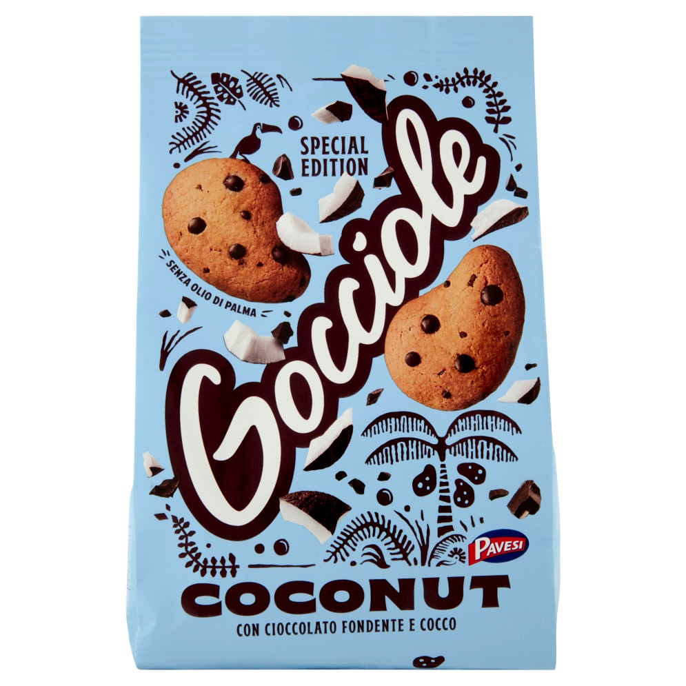 Pavesi, Gocciole Kokosnusskekse, 320 gr. Shortbread-Kekse mit dunkler Schokolade und Kokosnuss. Das exquisite Mürbeteiggebäck und der intensive Geschmack von dunkler Schokolade verbinden sich mit der frischen Delikatesse der Kokosnuss. Probieren Sie die neue Coconut Gocciole: perfekt zum Frühstück oder für einen Snack voller Energie! Ein Frühstück, das den Tag “von so zu so” verwandelt 3 Kokosnuss-Tropfen + 1 Tasse Magermilch (125 ml) + 1 Birne (150 g) = 1251 kJ / 299 kcal * * Entspricht 15% der täglichen Referenzaufnahme eines durchschnittlichen Erwachsenen (8400 kJ / 2000 kcal)Sonderausgabe, Palmölfrei, Mit dunkler Schokolade und KokosnussLager: Pavesi-Kekse werden ohne Verwendung von Konservierungsmitteln hergestellt. Es wird empfohlen, sie an einem kühlen und trockenen Ort aufzubewahren.Zutaten: Weizenmehl, Zucker, dunkle Schokolade 13% (Zucker, Kakaomasse, Kakaobutter, fettarmer Kakao, Emulgator: Sojalecithin), Sonnenblumenöl, Kokosnuss 8,5%, Butter, Glucosesirup, Triebmittel (Natriumhydrogencarbonat, Ammoniumhydrogencarbonat ), Salz, Aromen, Kann Spuren von Nüssen, Sesam und Eiern enthaltenAllergene: Enthält: Soja, Weizen / Weizen Es kann enthalten: Eier, Nüsse, Sesam Butter – Enthält Spuren von Nüssen, Sesam und Eiern